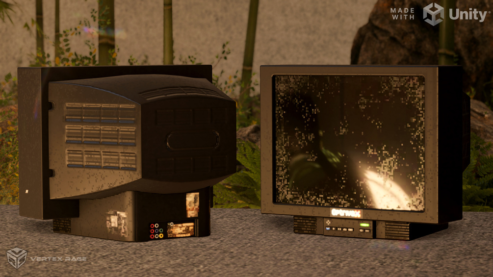 - 2 model versions: base CRT TV with flat screen (for ease of displaying custom content over it) and extra curved screen for authentic feel.
